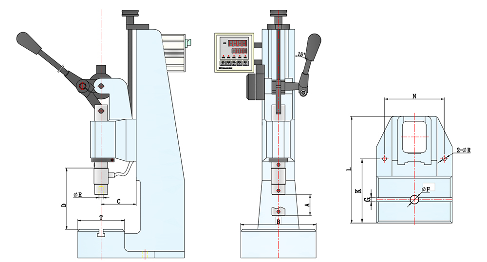 此機構保證了生產過程中,產品的一致性和產品的質量穩(wěn)定性,屬于自檢驗機構。行程精度±0.05mm,尤其適合精密零件的裝配。壓力機下壓行程的初始一段,為空行程,并不進入自鎖范圍,這時手柄可以返回并更換零件,繼續(xù)壓才進入自鎖范圍,進入自鎖范圍之后,行程自鎖機構開始發(fā)揮作用。 行程自鎖機構保證壓力機下壓到預設的位置自動復位,如果沒壓到位,手柄不能自動返回,此時需要操作者手動解鎖才可復位。
